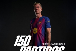 體育資訊9月15日訊 37歲的萊萬迎來了巴薩生涯150場里程碑,巴薩官方發海報為他慶祝。