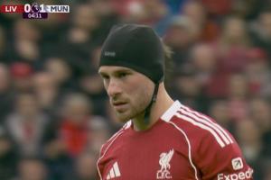 比賽剛開始姆伯莫破門,在進球前的爭頂,范迪克爭頂中肘擊麥卡利斯特。之后麥卡接受治療,頭上戴上了帽子繼續比賽。
