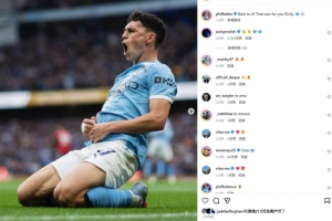 本場比賽福登首開記錄,這也是他自今年1月以來首次在英超破門,他也在個人社媒曬出滑跪慶祝照片,配文寫道:“重回正軌,進球獻給里奇。”
