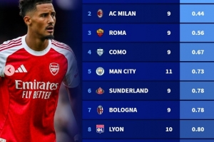 體育資訊10月21日訊 德轉(zhuǎn)盤點(diǎn)了五大聯(lián)賽球隊(duì)本賽季至今場(chǎng)均最少失球榜單(各項(xiàng)賽事),其中阿森納場(chǎng)均丟0.27球最少,具體如下: