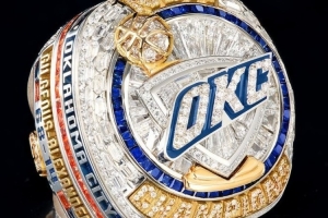 采用14K白金與黃金打造,鑲嵌藍橙雙色藍寶石。每枚戒指均以鉆石鑲嵌球員號碼。