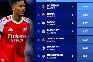 體育資訊10月22日訊 凌晨歐冠比賽阿森納4-0完勝馬競,賽后德轉官方統計本賽季五大聯賽球隊丟球最少榜,阿森納12場僅丟3球排名榜單第一。以下是根據場均丟球數的排名↓