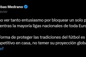 特巴斯寫道:“看到人們如此熱衷于去阻止一場海外比賽,真是令人感到好奇,而與此同時,整個歐洲的大多數國內聯賽都在為生存而掙扎。”