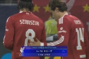 體育資訊10月23日訊 歐冠聯賽階段第3輪利物浦客戰法蘭克福下半場,利物浦換下伊薩克,換上基耶薩!
