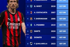 體育資訊9月15日訊 意甲第3輪比賽,米蘭以1-0的比分小勝博洛尼亞。本場比賽,40歲老將莫德里奇打進了全場唯一進球,克羅地亞人躋身本世紀五大聯賽最年長進球者前10。