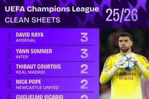 本賽季歐冠零封榜: