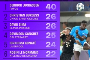 體育資訊10月23日訊 本賽季歐冠聯賽階段已戰罷3輪,Squawka統計了到目前為止的對抗獲勝榜單,卡拉巴赫后衛馬修斯-席爾瓦33次第一,比利亞雷亞爾后衛圣地亞哥-穆里尼奧28次第二。