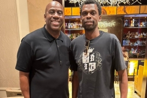 今天,NBA名宿魔術師約翰遜更推道:“在文班亞馬對陣達拉斯獨行俠的比賽中狂砍40分15籃板之前,看看我在和誰共度時光——費利克斯-文班亞馬(文班的父親)。”