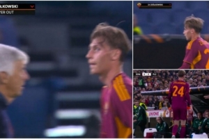 《羅馬體育報》表示,齊奧爾科夫斯基對這次換人很不滿,他先是冷眼看向羅馬主帥加斯佩里尼,勉強和對方握手,隨后回到替補席。羅馬老將克里斯坦特主動和他擊掌,試圖安慰這位小將。而齊奧爾科夫斯基坐在替補席上也不停嘟囔著,顯然很不開心。而羅馬領(lǐng)隊托達羅之后也來到一旁和他交談,可能是在安撫他。
