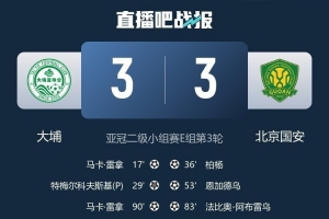 體育資訊10月25日訊 在周中進行的亞冠二級聯賽小組賽比賽中,北京國安客場3-3與中國香港球隊大埔戰平,