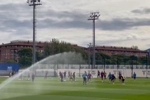 報道指出:“在客戰皇馬前,巴薩進行了訓練??椎抡⒓忧蜿犛柧?,拉菲尼亞、萊萬、奧爾莫、霍安-加西亞缺席,長期傷病中的加維和特爾施特根也沒有參加訓練。”