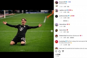 德甲官方賬號也現身評論區鼓勵道:“處子球總是很特別!相信你未來還能進更多球。”