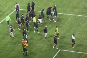 博主“斯文已逝”寫道:國安賽后謝場環節應該是有人提前回更衣室了,頂著全場噓聲和“丟人現眼”的喊聲走了一圈,另一邊海牛功臣薩里奇獲得大片掌聲。