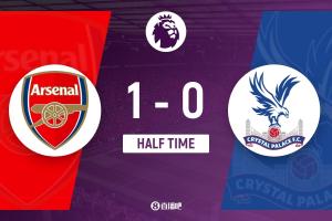 上半場傷停補時2分鐘,半場結束,阿森納暫1-0水晶宮。