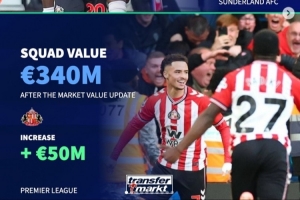 體育資訊10月27日訊 《轉會市場》在近日已經更新了五大聯(lián)賽球隊身價,他們也據此列出了各大聯(lián)賽最新身價更新后的身價(歐元)上漲和下降最多的球隊。