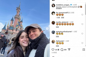 瑪達萊娜與內維斯一起來到迪士尼樂園游玩,瑪達萊娜社媒曬出照片,配文:“迪士尼樂園萬圣季。”