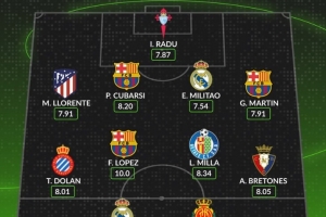 體育資訊9月16日訊 本輪西甲戰(zhàn)罷,數據網站Whoscored也評出本輪西甲最佳陣,具體如下: