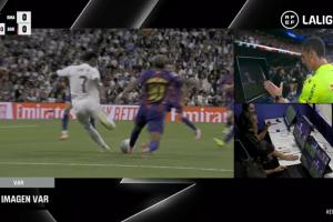 關(guān)于下半場開始時埃里克·加西亞的手球,主裁判索托·格拉多最初判罰為角球。委員會分析認為,這名后衛(wèi)"試圖通過倒地滑鏟攔截傳中",并且"第一次觸球是用腿部成功完成",但在皮球經(jīng)貝林厄姆反彈后,他"用左臂做出了一個極其明顯的動作以阻斷進攻",且"已無可能以合規(guī)方式處理球"