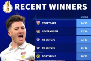 體育資訊10月29日訊 《轉會市場》統計了近10年德國杯冠軍,拜仁3次居首但已5年未能奪冠,多特、萊比錫各2冠。