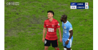 比賽第13分鐘,蓉城球員甘超對河南外援阿奇姆彭做出了閉嘴的手勢。