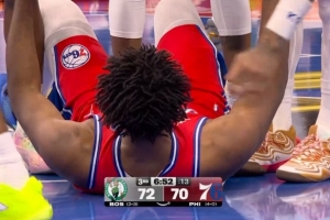 GIF-懷特對恩比德犯規,隨后被換下