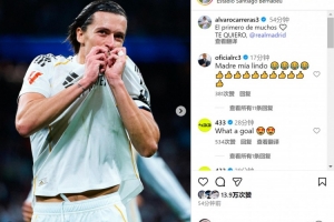 卡雷拉斯社媒曬出親吻皇馬隊徽的照片,配文:“很多進(jìn)球中的第一個。我愛你,皇馬。”