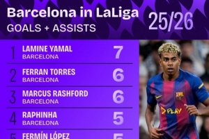 多點開花!本賽季巴薩5名球員聯賽參與進球5+,五大聯賽首隊