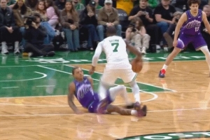 GIF-杰倫-布朗遭飛鏟,沒有被吹犯規
