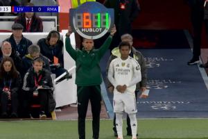 體育資訊11月5日訊 利物浦vs皇馬,皇馬第69分鐘換人,羅德里戈換下卡馬文加。