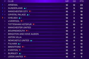 體育資訊11月5日訊 Squawka每周都會(huì)讓球迷投票選出最具爭(zhēng)議的VAR判罰,并列出了去除VAR爭(zhēng)議判罰之后的英超積分榜,阿森納23分居首,桑德蘭20分次席。