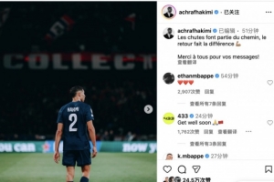 體育資訊11月6日訊 阿什拉夫在對陣拜仁的比賽中受傷,球員發文。