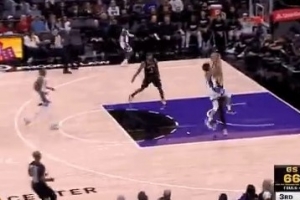GIF-克利福德反擊撞倒波杰姆斯基裁判吹進攻犯規;國王挑戰成功變防守犯規