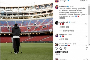 加維社媒:很榮幸攻入老諾坎普最后一球,期待與球迷享受新球場