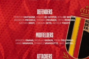 后衛(wèi):卡斯塔涅(富勒姆)、德屈佩(布萊頓)、德溫特(米蘭)、梅切勒(布魯日)、穆尼耶(里爾)、迭戈-莫雷拉(斯特拉斯堡)、恩戈伊(里爾)、塞斯(布魯日)、泰特(法蘭克福)