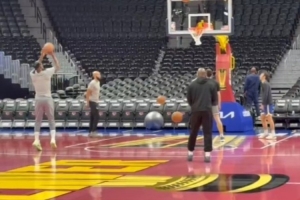 勇記:巴特勒進行了賽前投籃訓練 因下背部酸痛仍被列為出戰成疑