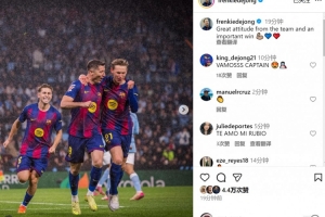 德容社媒曬出與萊萬慶祝進球的合照,配文:“球隊展現了很棒的態度,收獲一場重要的勝利?!?/p>
