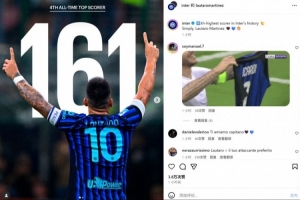 161球并列隊史射手榜第4!勞塔羅社媒轉(zhuǎn)發(fā)數(shù)據(jù)并曬慶祝照紀(jì)念