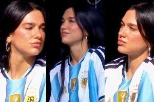 正在阿根廷布宜諾斯艾利斯舉行演唱會的啪姐Dua Lipa現場觀戰博卡青年vs河床的比賽,身著阿根廷最新國家隊戰袍,并與里克爾梅合影。