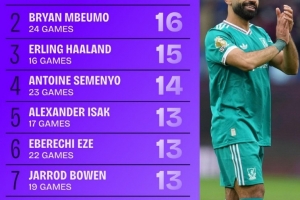 體育資訊9月19日訊 數據網站Squawka盤點了2025年英超參與進球榜(進球+助攻),薩拉赫居首,具體如下: