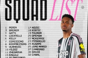 體育資訊9月20日訊 北京時間9月21日凌晨0:00,2025-26賽季意甲聯賽第4輪,尤文圖斯將客戰維羅納。賽前,尤文官方公布了本場比賽球隊大名單。