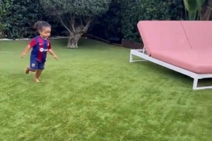 體育資訊9月21日訊 據西班牙媒體《世界體育報》報道,巴薩吉祥物來到拉菲尼亞家中,與拉菲尼亞的兒子互動。
