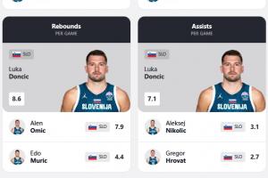 在本屆歐錦賽中,東契奇場均能得到34.7分8.6籃板7.1助攻2.7搶斷。效率、場均的得分、籃板、助攻、搶斷、蓋帽等六項數據皆為全隊最高。