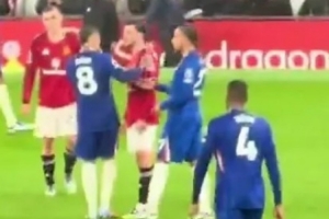 在比賽中,恩佐成為多次與曼聯球員沖突的焦點,比賽中他被拍到與盧克-肖爭執。此前在上賽季交鋒時,恩佐就曾與藍軍舊將芒特發生過口角,而這對冤家在周六賽后似乎重燃戰火。