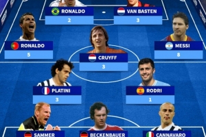 前鋒:C羅(5次)、羅納爾多(2次)、范巴斯滕(3次)、梅西(8次)