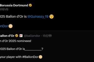 體育資訊9月22日訊 多特官方發推調侃,表示吉拉西是2025年的金球獎得主。