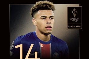 體育資訊9月23日訊 2025年金球獎排名陸續公布,20歲的巴黎圣日耳曼邊鋒杜埃排名第14位,生涯首次入圍。