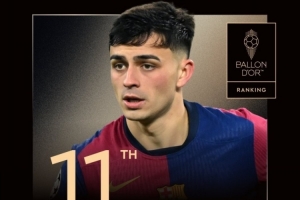 體育資訊9月23日訊 2025年金球獎排名陸續公布,22歲巴薩中場佩德里第11名。