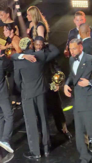 體育資訊09月23日訊 2025年金球獎(jiǎng),登貝萊加冕榮譽(yù)。現(xiàn)場(chǎng)儀式結(jié)束后,亞馬爾等待在一旁,祝賀并擁抱了登貝萊。