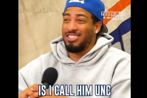 主持人在引導問題的時候,另外一位嘉賓斯派克-李插話到:“庫里多少歲了?”哈利伯頓笑著說:“我不知道,我只知道我叫他叔叔(uncle),我不知道他多少歲。他可能36、35還是37?”