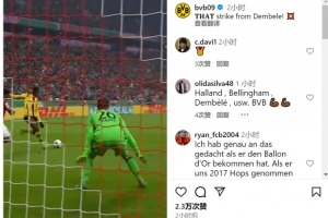 登貝萊老東家多特官方更新社媒動態,曬出登貝萊效力多特期間精彩進球的視頻,配文:“現在他已是金球獎得主。”